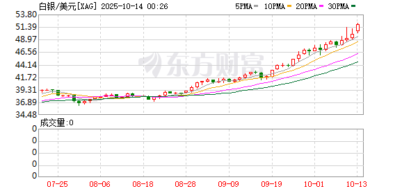 黄金大跌的同时,“好兄弟”白银也跟着出现跳水走势,隔夜大跌3.36%之后,10月28日亚洲交易时段继续走低,已经下跌2.2%。本月白银现货价格已经从54.453美元/盎司,跌至46美元/盎司附近,最大回撤达到16%。年内涨幅也从最高85%,回落至58%。